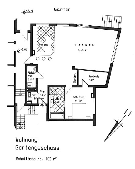 Gartengeschoss, Makler frei, Wohnessbereich, Ankleidezimmer, badewanne,